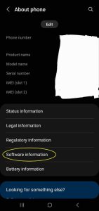 ابتدا به منوی settings وارد میشویم. و بعد گزینه About phone را انتخاب میکنیم وبعد Software infomation را انتخاب میکنیم. که به ترتیب در تصاویر زیر نشان داده شده است.